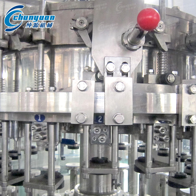 氣泡水灌裝設備選用優質的SUS304材料制作,主關件部件采用數控機床精密加工,氣泡水含汽飲料灌裝機械采用先進光電檢測各部件的運行狀況,具有無瓶不灌裝,無瓶不送蓋,自動化程度高。
