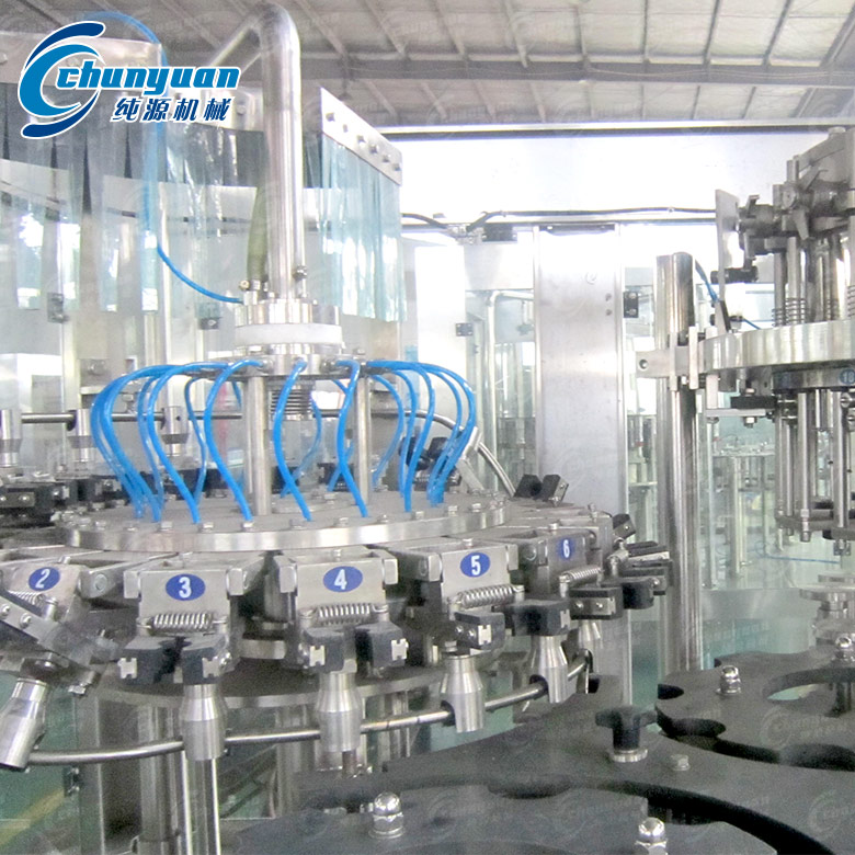 組內(nèi)一次性完成洗瓶、灌裝、封蓋三道工序,其瓶子損壞小、傳動準(zhǔn)確平穩(wěn)、瓶型更換快捷。特殊規(guī)劃的沖瓶機(jī)瓶夾結(jié)實(shí)耐用,不接觸瓶口螺紋部位,防止瓶口的二次污染。與液體接觸的零部件均采用優(yōu)質(zhì)不銹鋼材料或食品級工程塑料,相符合國家食品衛(wèi)生標(biāo)準(zhǔn)。