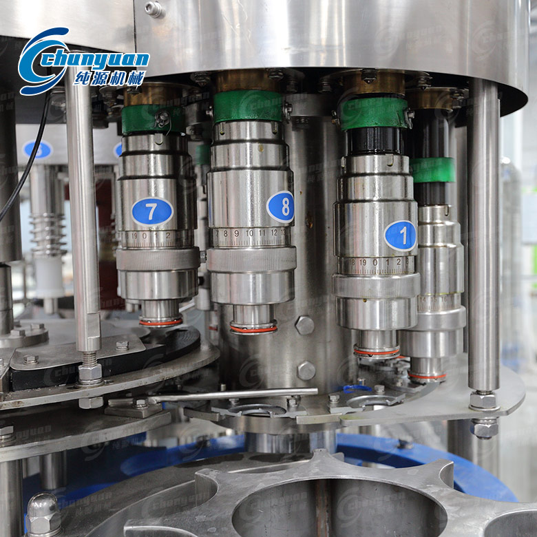 純源飲料機械廠家生產制造的小瓶礦泉水灌裝機械適合350-1500ml的PET瓶裝水的灌裝生產,根據物料水位高度主動控制,過程全自動生產完成。小瓶水灌裝設備選用懸掛式灌裝,不一樣的瓶型、瓶子大小、厚簿都可以操作,使用范圍廣泛。